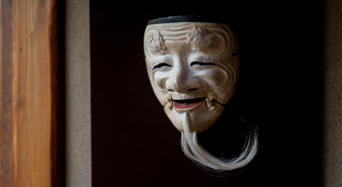 能という演劇ができた頃から、今に伝わる最も古い面は「翁」という能面です。翁は神、もしくは神の化身として特別に扱われています。