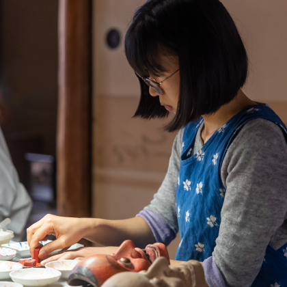 「素晴らしい伝統である能面を残したい」「能面師という仕事を次世代につなぎたい」という想いから創設されました。弟子とともに運営しています。
